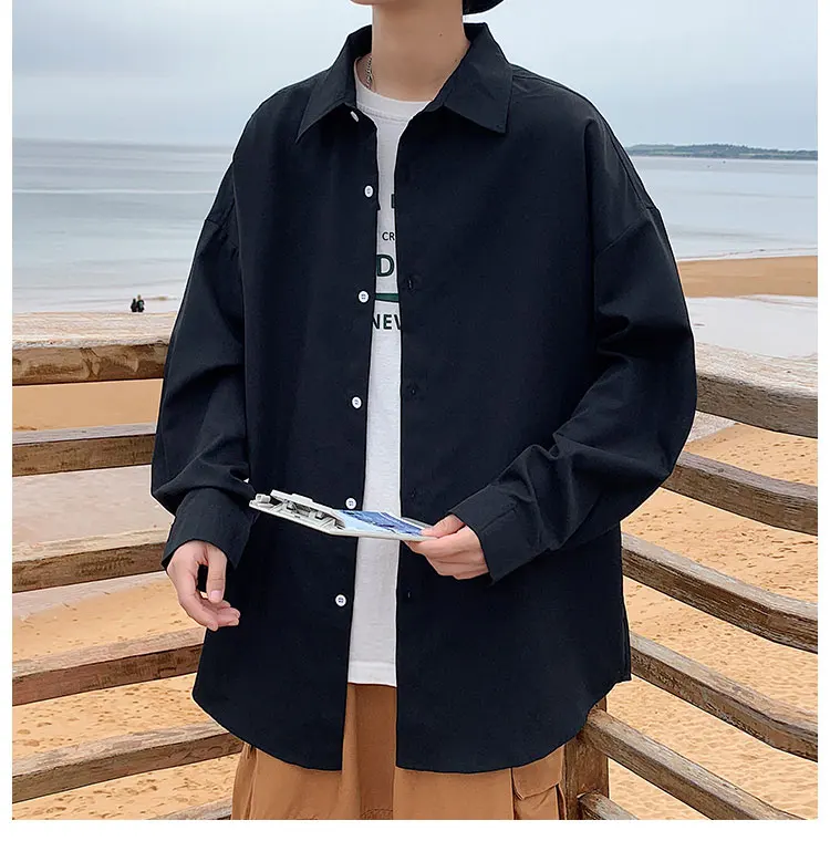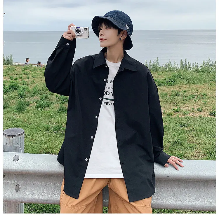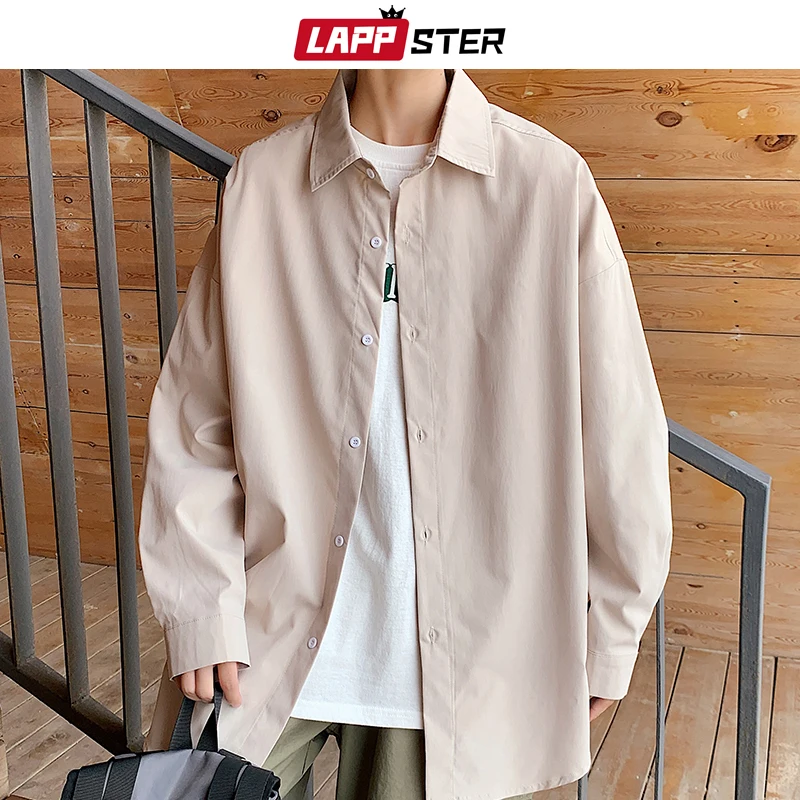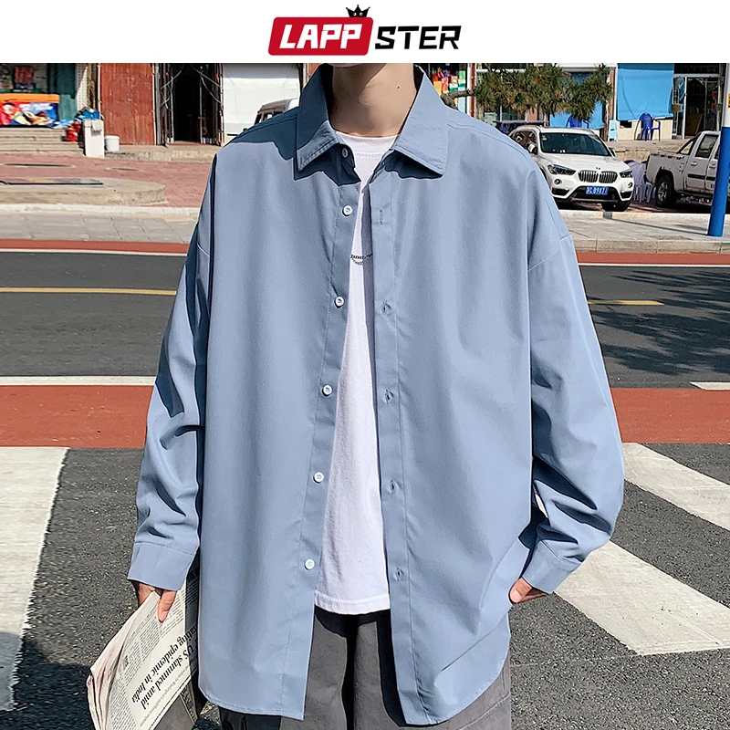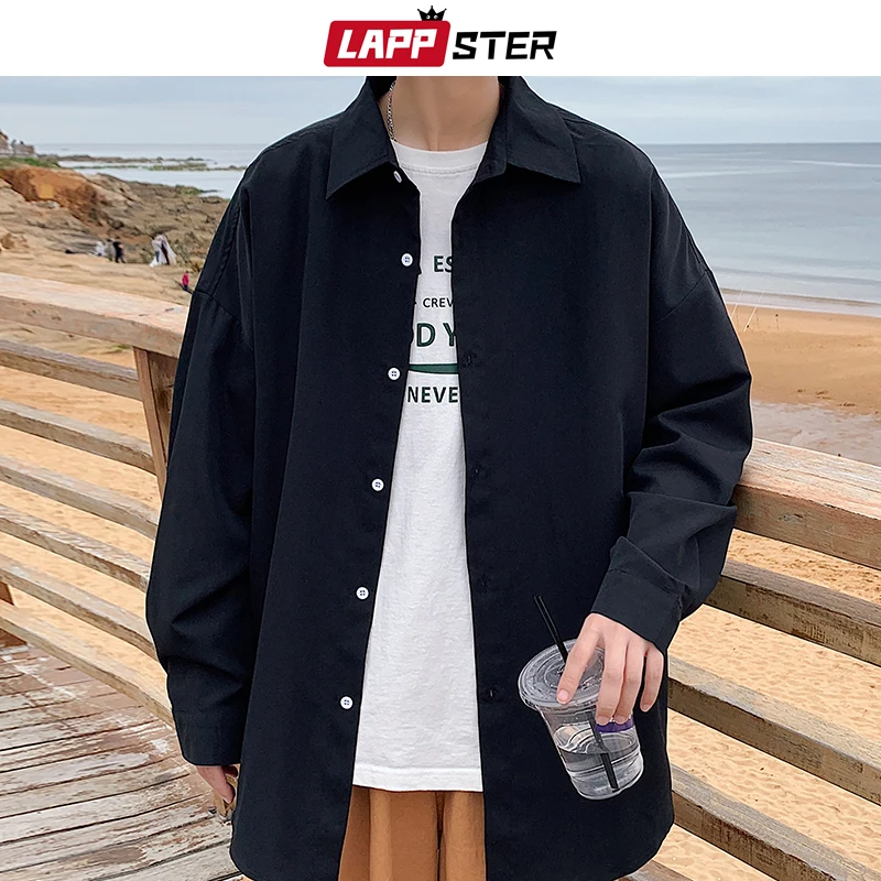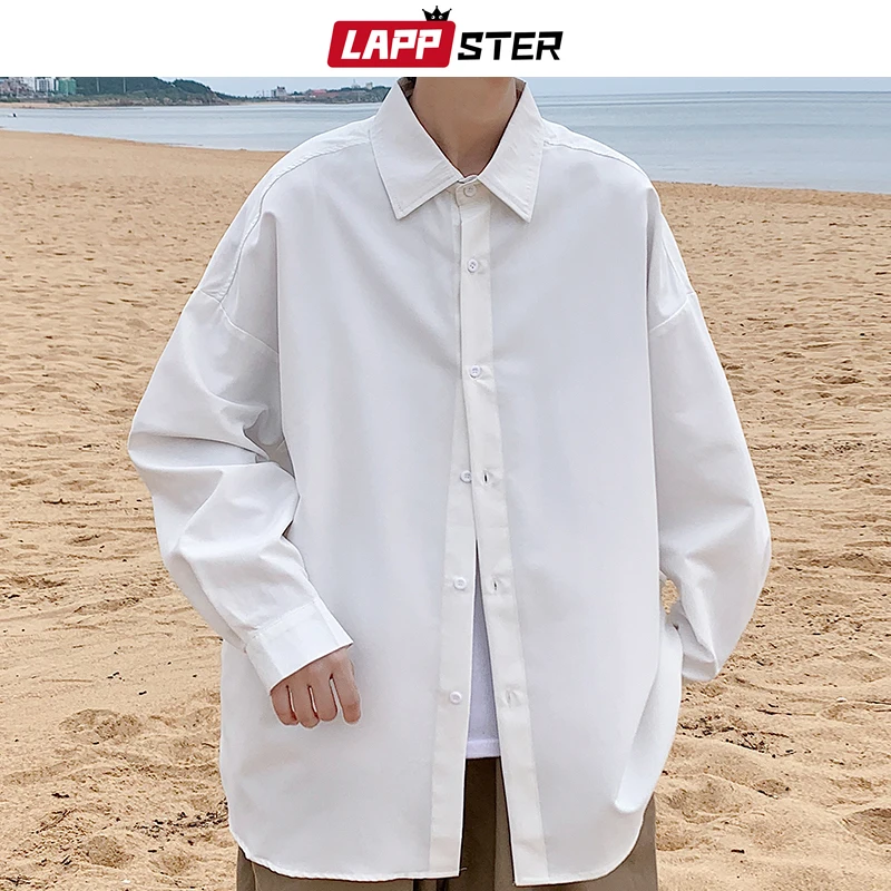 Рубашка LAPPSTER Мужская однотонная, модная блузка в стиле Харадзюку, Повседневная Блузка, цвет белыйчерный, 2022