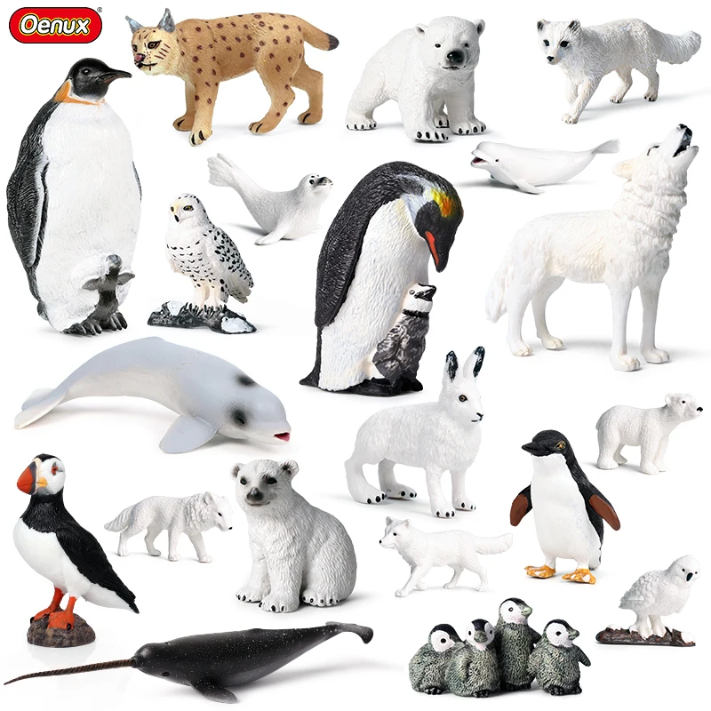 Моделирование Oenux, животные полярного океана, Арктическая лиса, пингвин, медведь, волк, кролик, модель печати, ПВХ морские фигурки, Детская развивающая игрушка