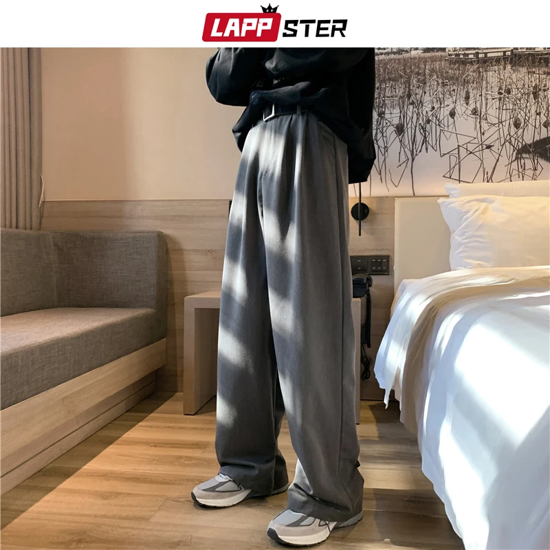 Брюки LAPPSTER мужские с широкими штанинами, повседневные мешковатые Джоггеры в стиле Харадзюку, черные, 2022