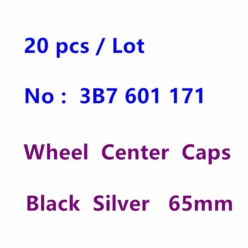 Колпачки для центра колеса автомобиля, 20 шт.лот 3B7 601, черныесеребряные, 65 мм