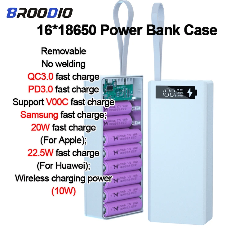 QC3.0 Быстрая зарядка 16x1865 0 коробка для хранения батарей поддержка быстрой и беспроводной зарядки коробка для батарей для телефона 16*18650 чехол для внешнего аккумулятора