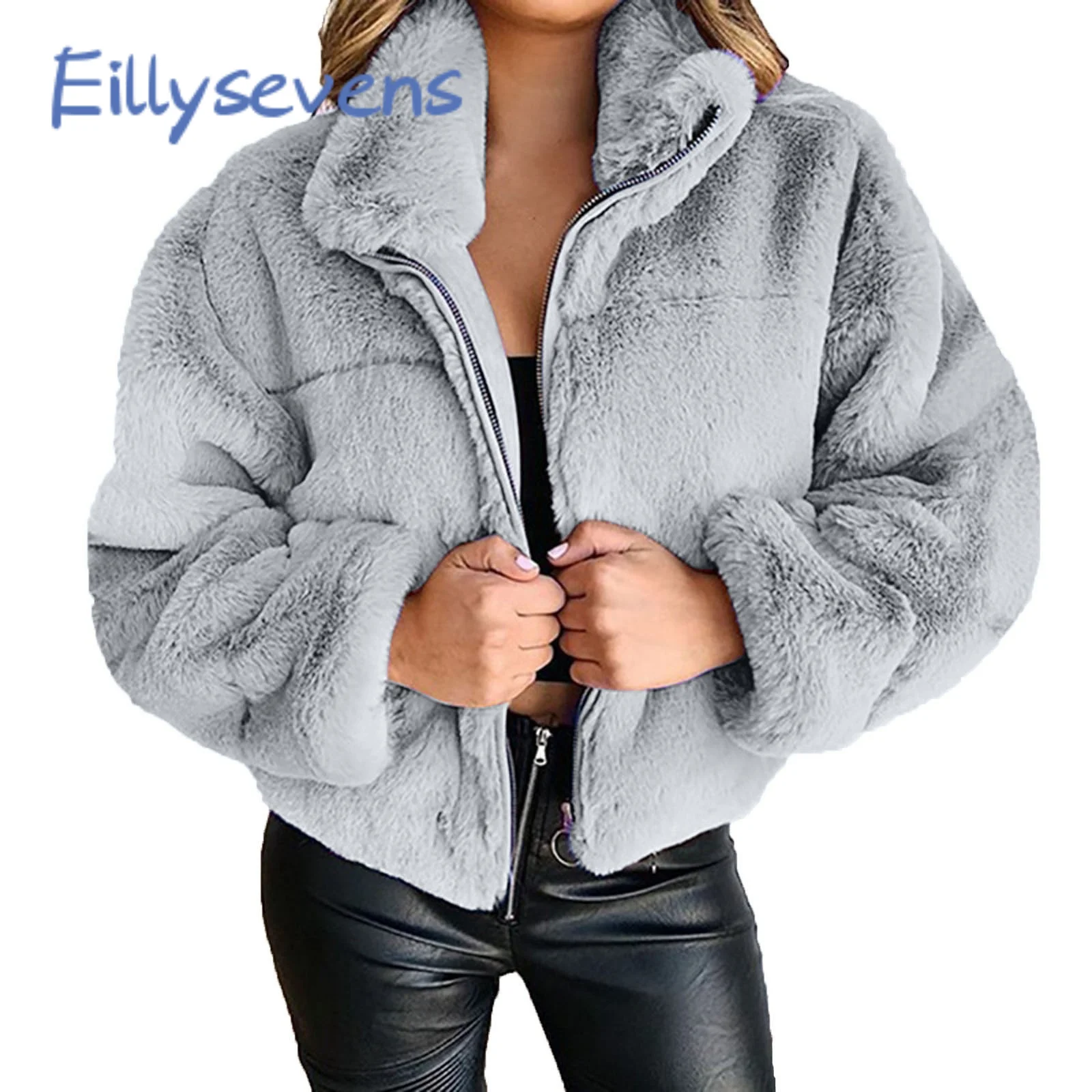 Зимняя женская одежда с лацканами, однотонное короткое пальто на молнии, модная верхняя одежда из овечьей шерсти, крутая теплая уличная одежда, топы с длинными рукавами