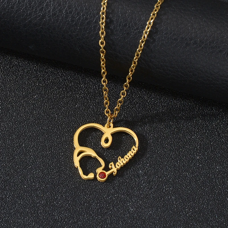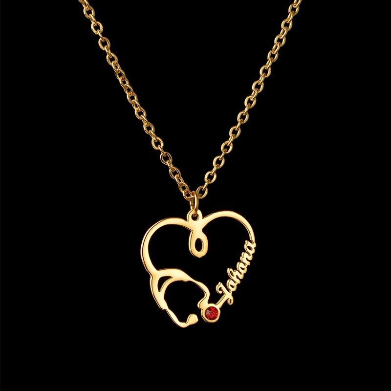 FeatureLink chain,Love heart name necklace,Stethoscope birthstone Nameplate Necklaces
