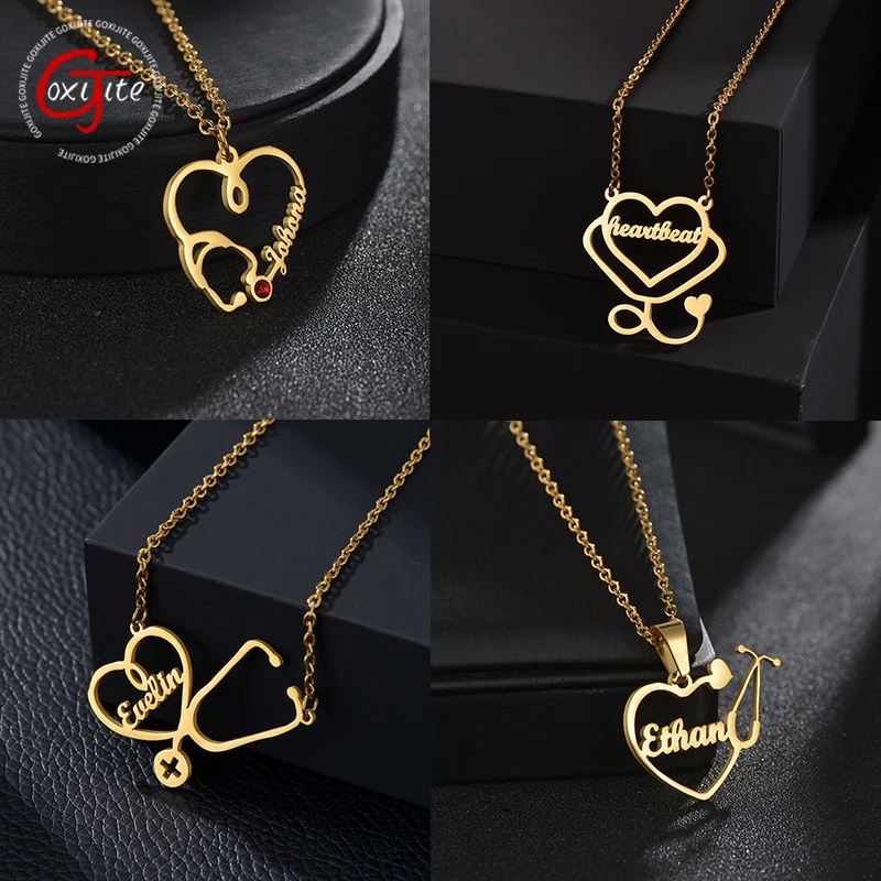 Название: Goxijite, ожерелье из нержавеющей стали, на заказ, с надписью Love Heart Name, персонализированное стетоскоп, с надписью, женские ожерелья с кулоном