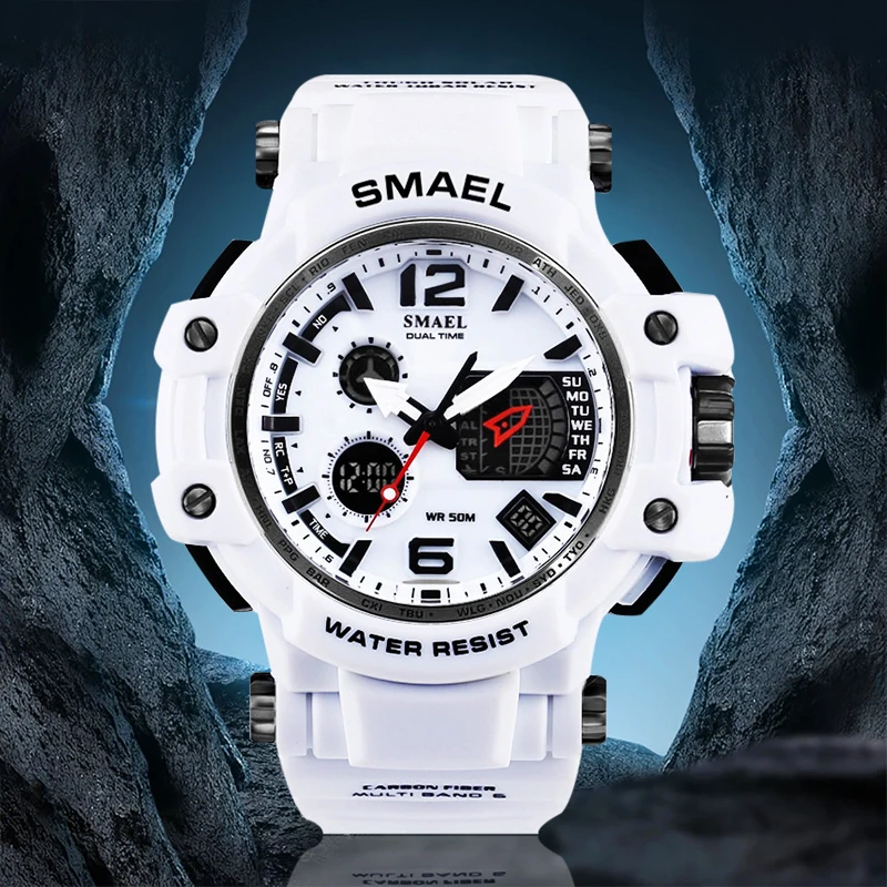 SMAEL мужские часы белые спортивные часы светодиодный цифровой 50 м...