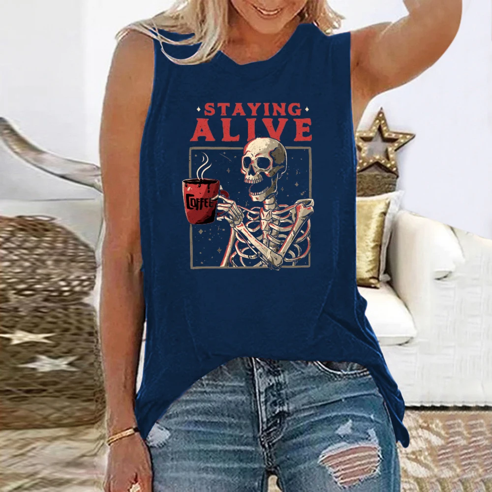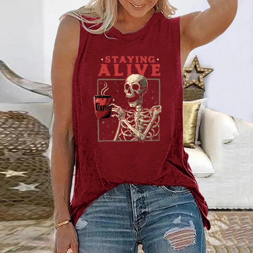 Забавная Женская футболка без рукавов Stayong Aliye, летняя спортивная футболка с принтом черепа, Свободный жилет с круглым вырезом, винтажная женская футболка