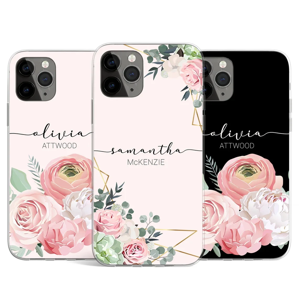 Персонализированный Чехол для телефона с инициалами имени и цветочным рисунком для Apple iPhone 13 12 11 6 7 8 X XS Max XR Pro Plus 13 mini