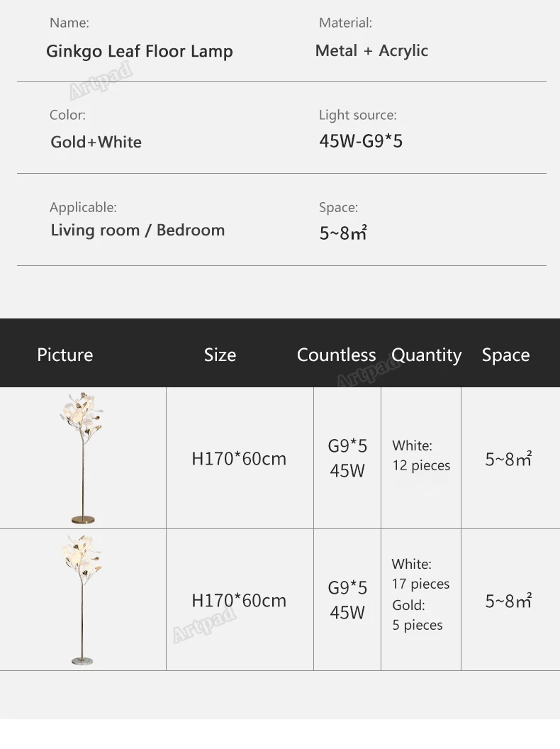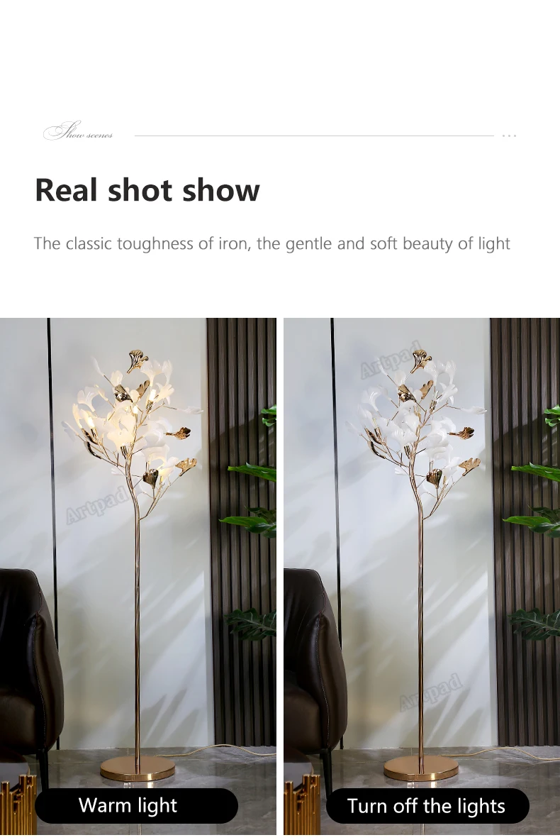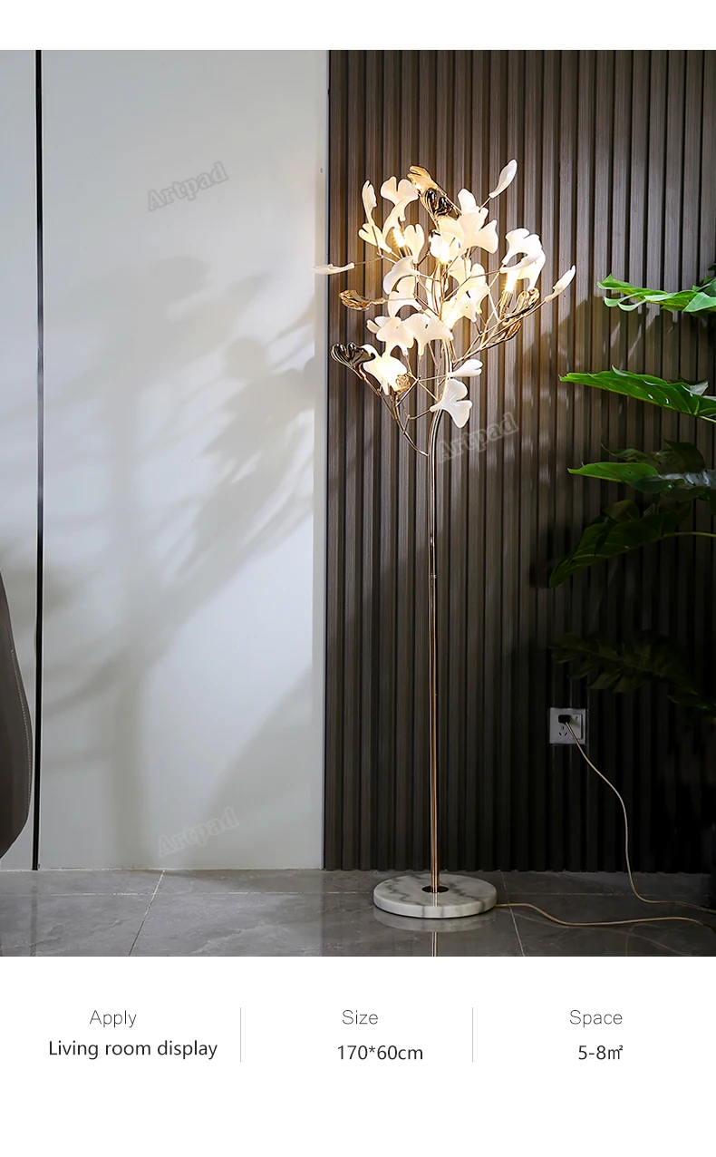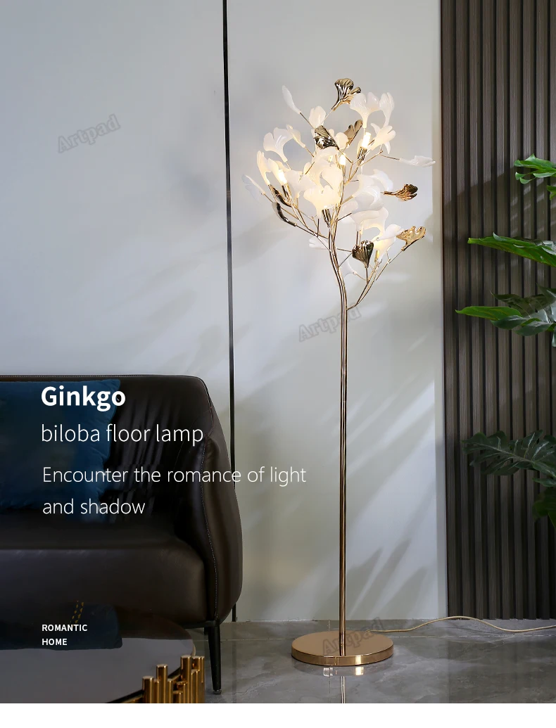 Скандинавская лампа Ginkgo Leaf, лампа для гостиной, романтический Ночной светильник, спальня Напольная Лампа для чтения, для декора кровати, светильник для ресторана, ing