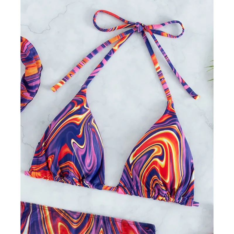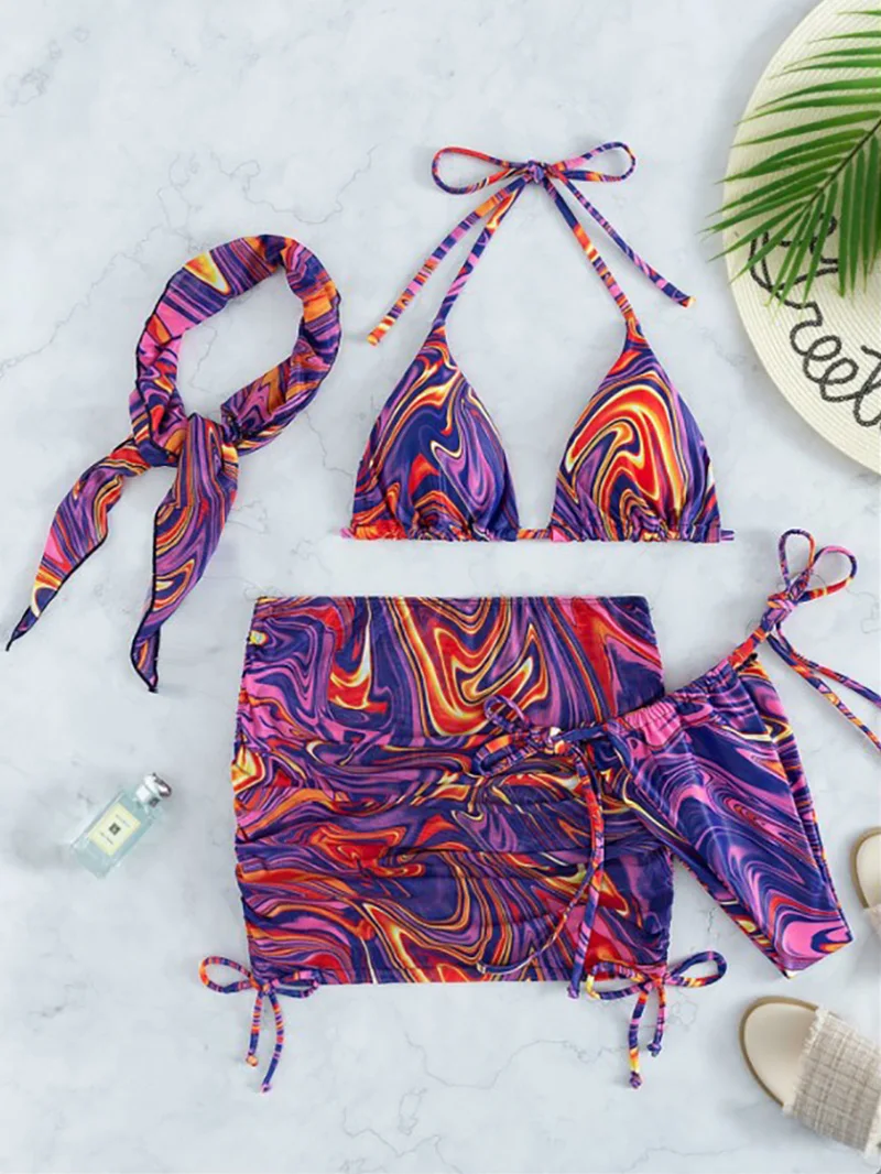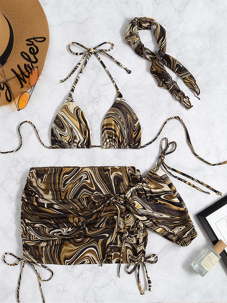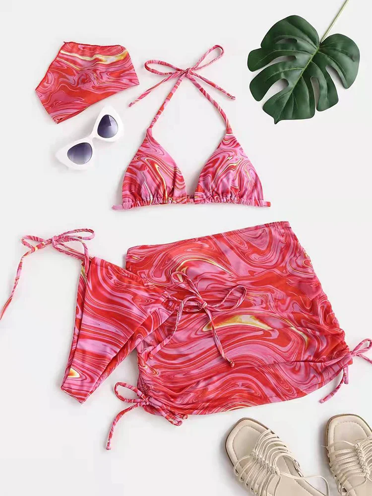 Miyouj 2022 купальник с волнистым принтом, сексуальные купальные костюмы, 4 шт., бикини, пляжный саронг, микро стринги, купальник, женская пляжная одежда