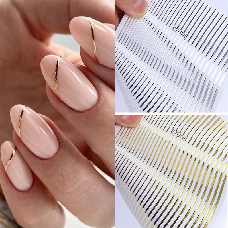 1 лист полосок, 3D наклейки для ногтей, металлические линии, многоразмерная полоса, волнистые самоклеящиеся наклейки для дизайна ногтей