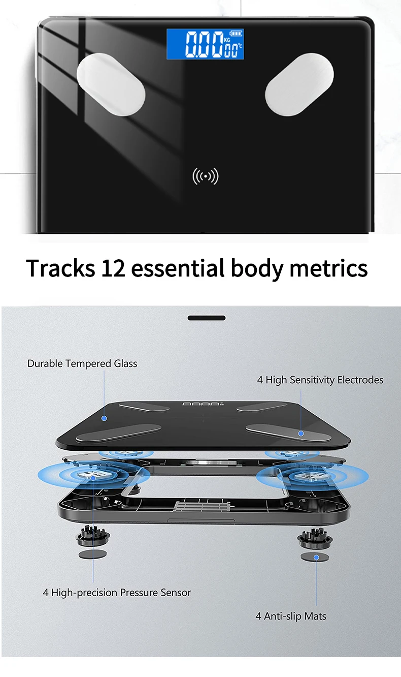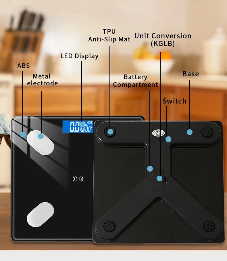 Электронные весы, совместимые с Bluetooth, Smart BMI, цифровые весы...