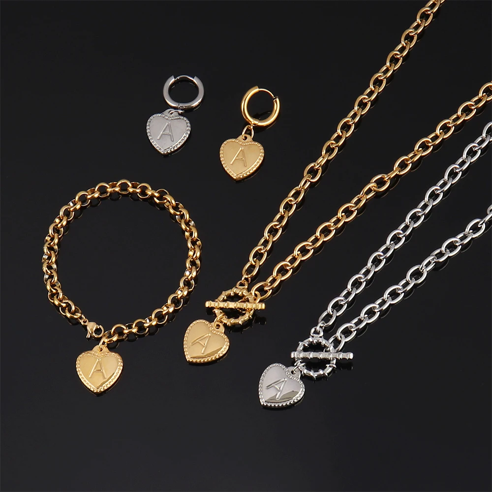 Браслет из нержавеющей стали с подвесками в виде сердца, 26 букв ал...