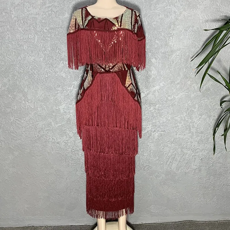 Африканские платья с кисточками и блестками для женщин, новый стиль...