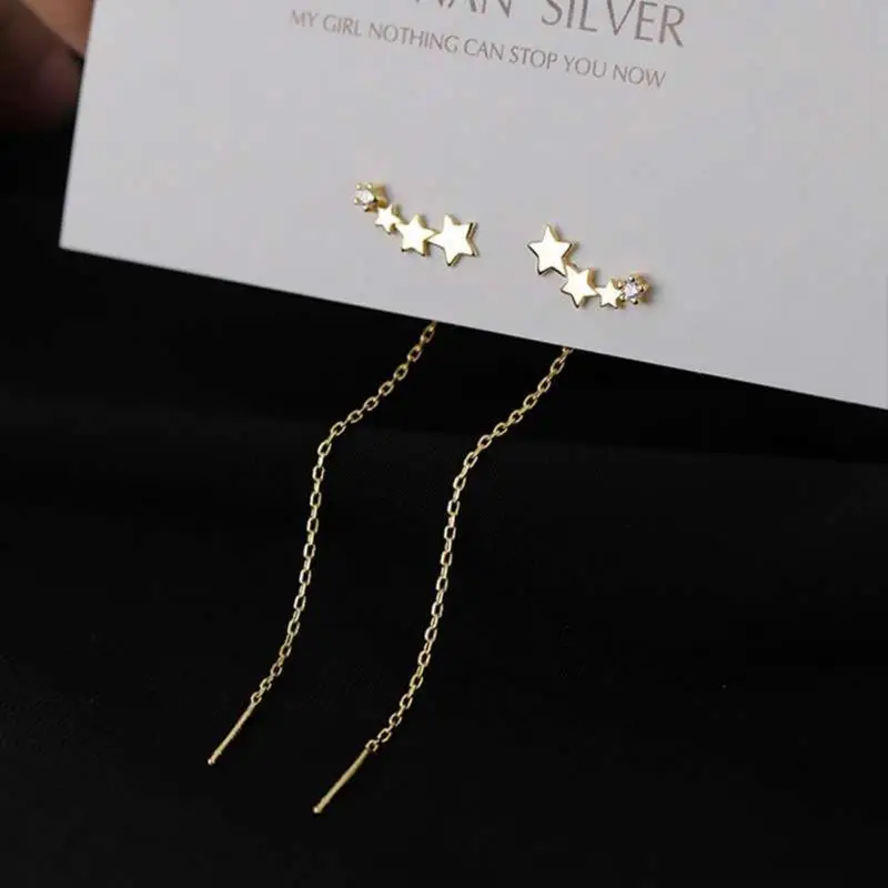 Женские серьги в виде звезд, характерные длинные маленькие серьги из стерлингового серебра, серьги сказочного дизайна