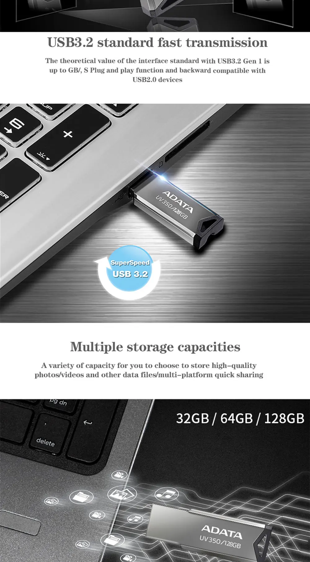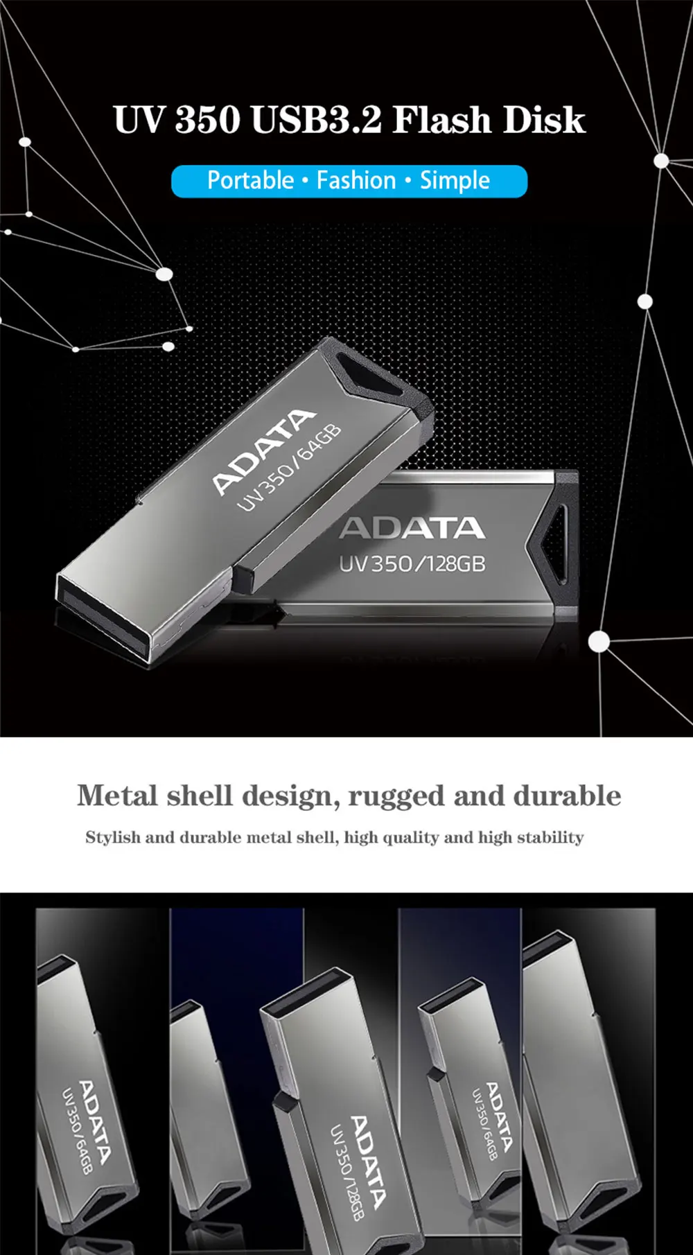 USB-флеш-накопитель ADATA 3264128 ГБ, Металлический Высокоскоростной U-диск с шифрованием UV350, USB 3,2, 128 ГБ