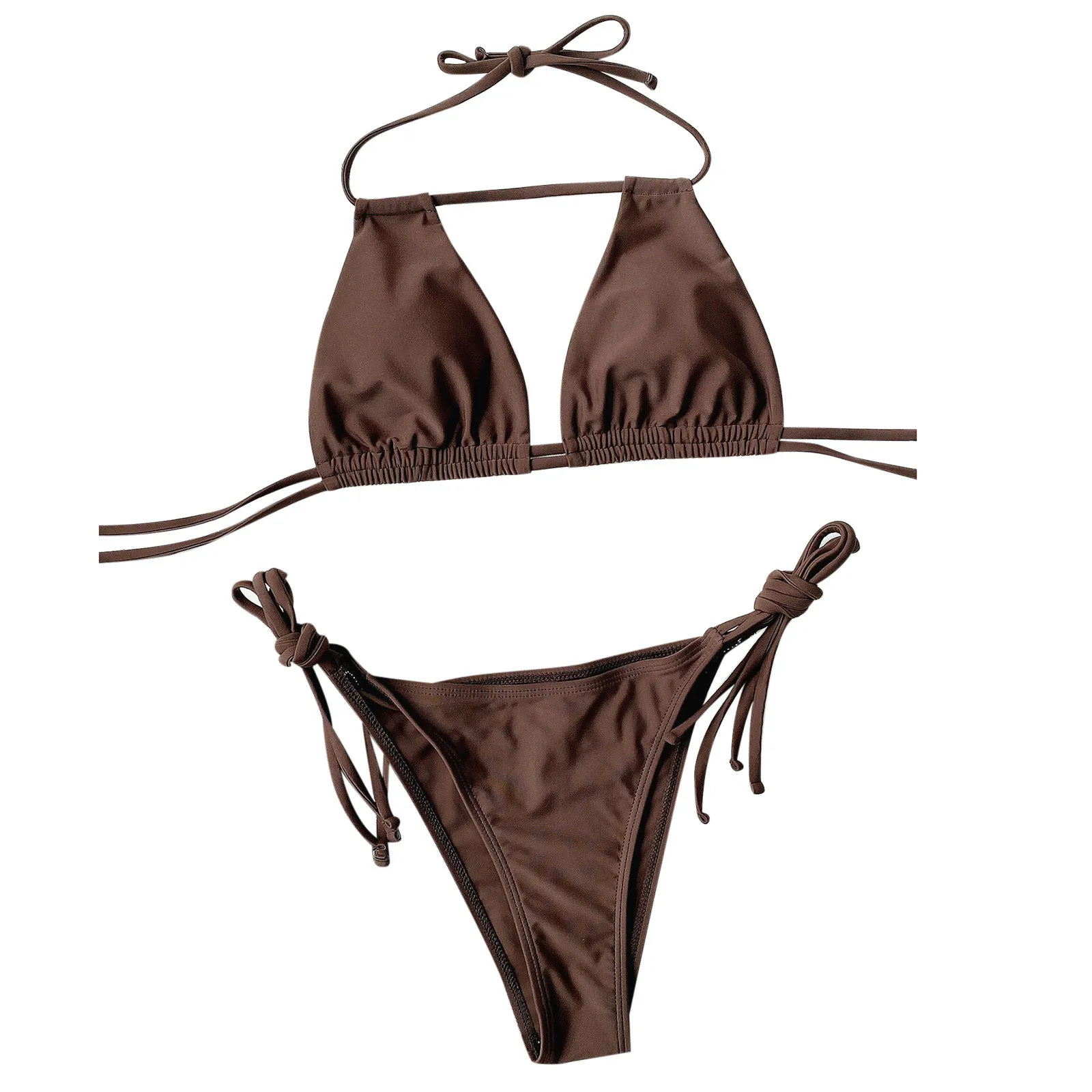 Женский комплект бикини, купальник, сексуальные однотонные бандажные костюмы пуш-ап из двух предметов, пляжная одежда, без косточек, средняя талия с подкладкой