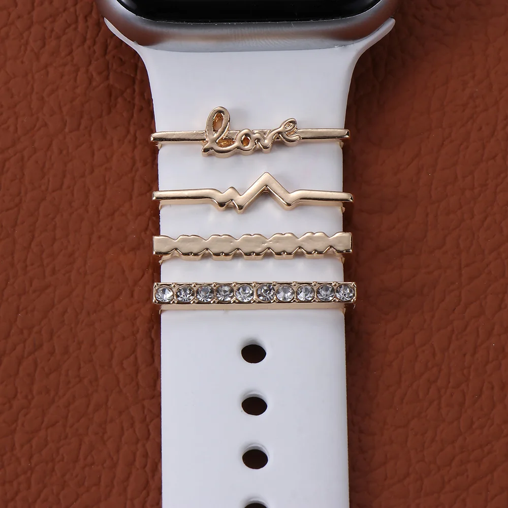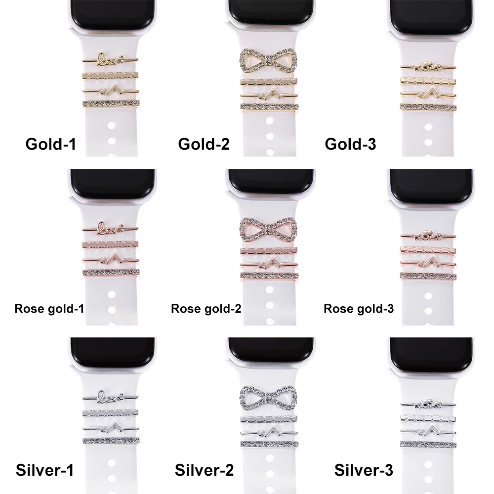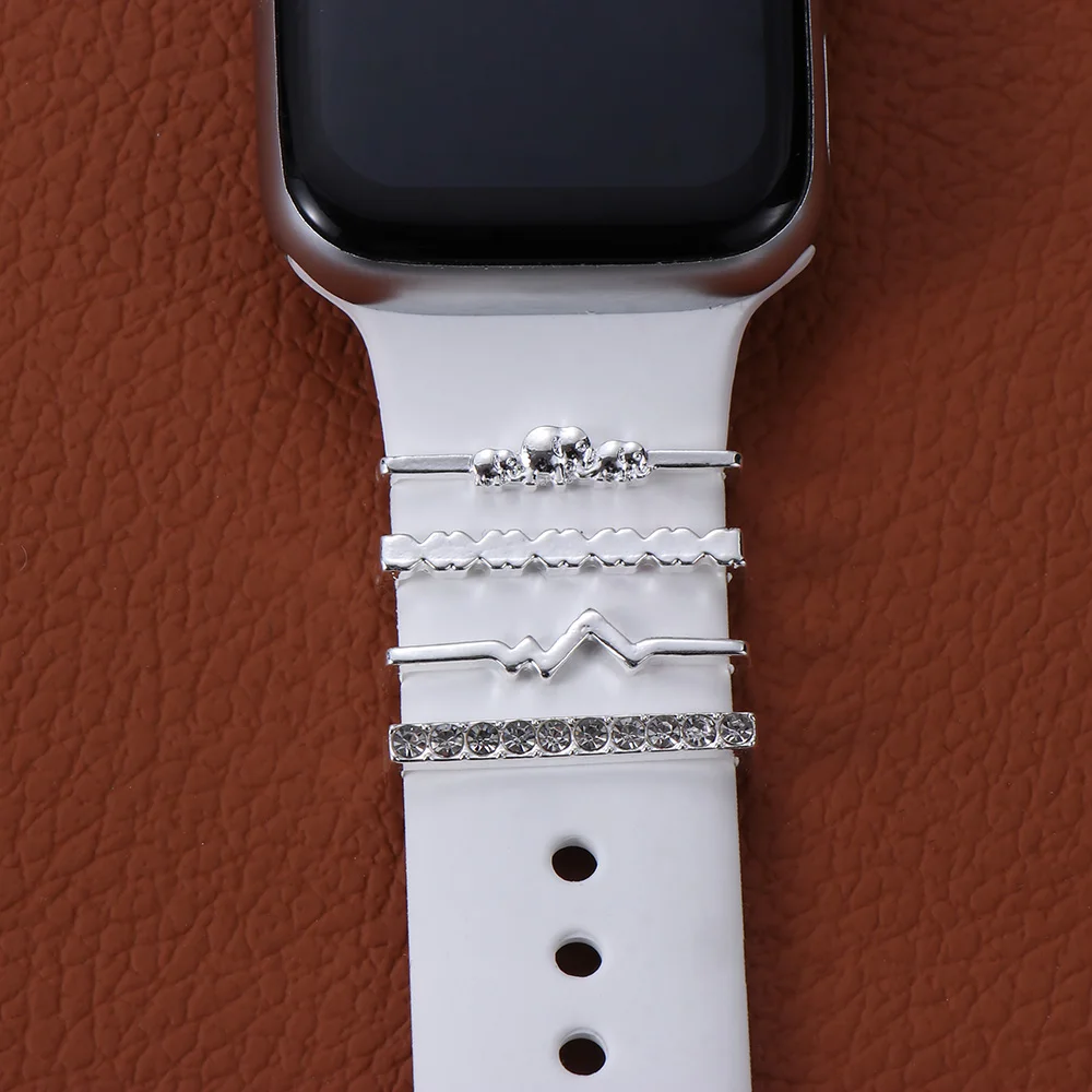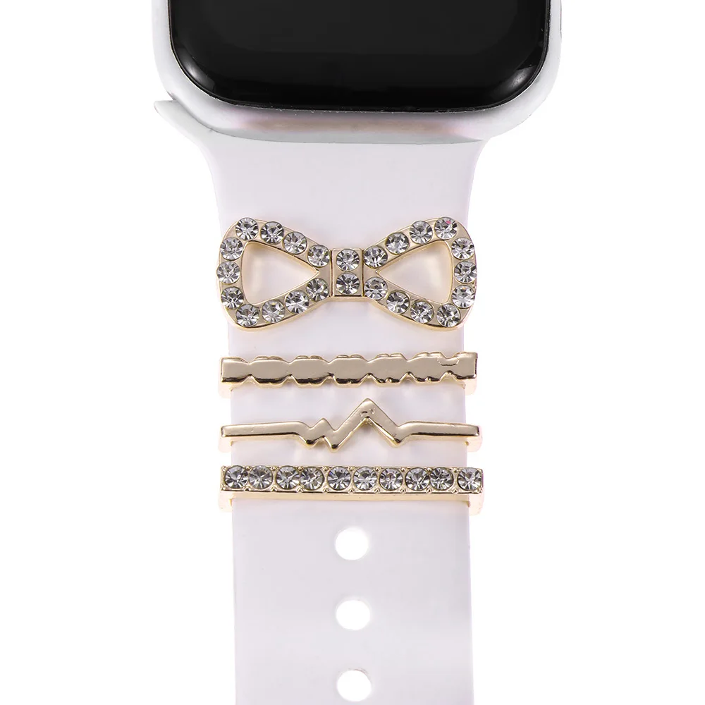 Металлический бриллиантовый браслет, брошь, шармы, наручный ремешок, Декор, кольцо, ремешок для часов, орнамент для браслета Apple Watch, силиконовый ремешок, аксессуары