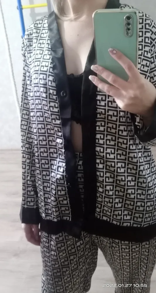 Спасибо! Доставка очень быстрая в Лен обл меньше месяца. Материал синтетика, типо шёлк, спать конечно в ней не буду, но как домашний костюм отлично.