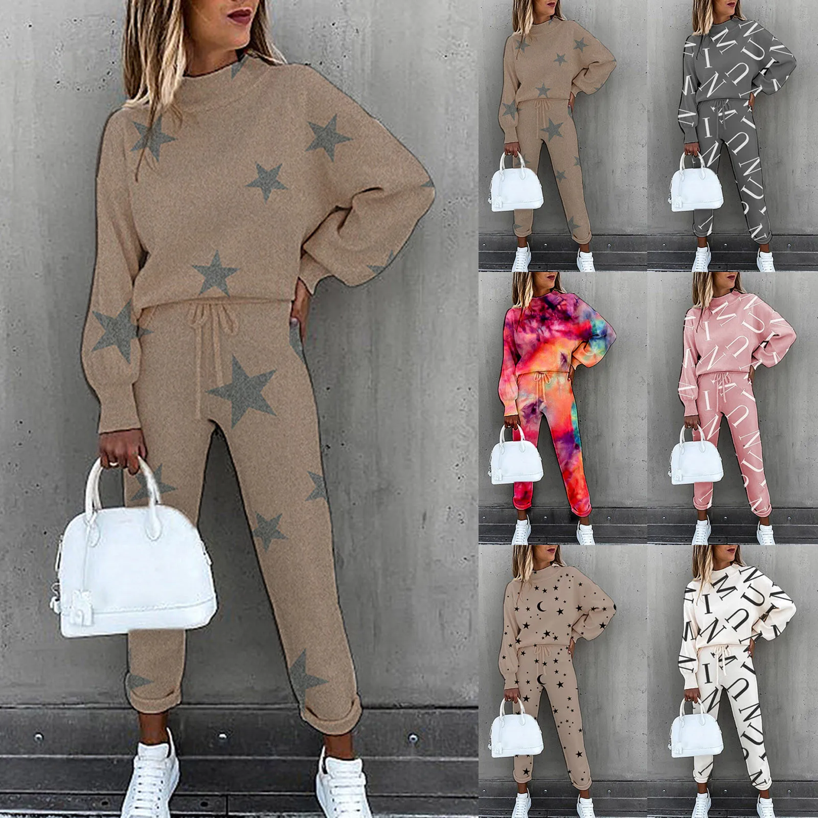 Костюм спортивный женский из двух предметов, модный Свободный пикантный костюм с длинными рукавами и принтом, повседневный сочный