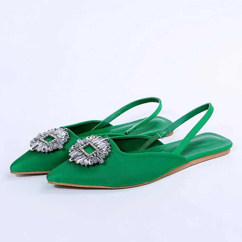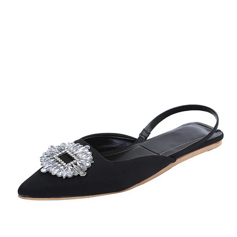 Женские туфли с ремешком на пятке, с острым носком, на плоской подошве