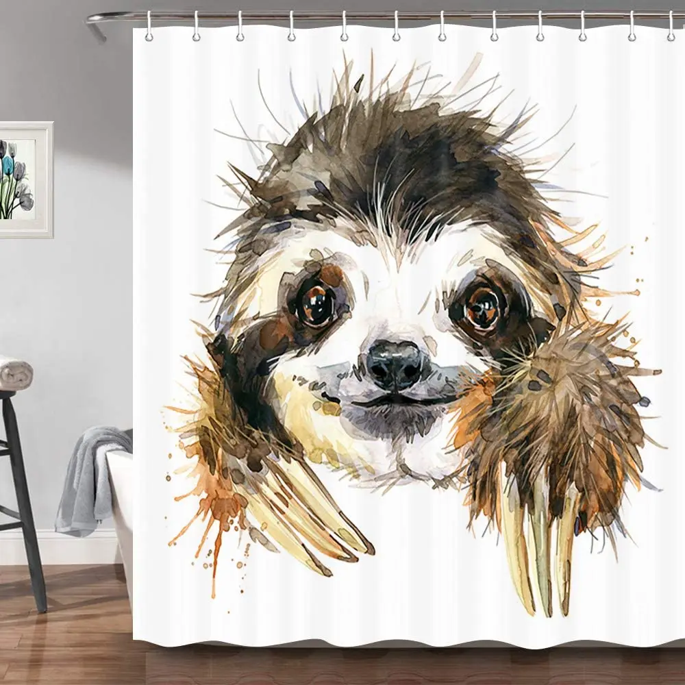 Занавеска для душа Ленивец, забавная Милая Ленивец Акварельная животная Художественная печать, декор для ванной комнаты, тканевая занавеска для душа s