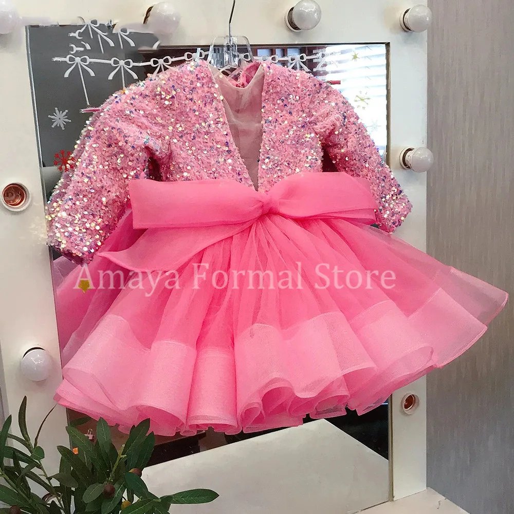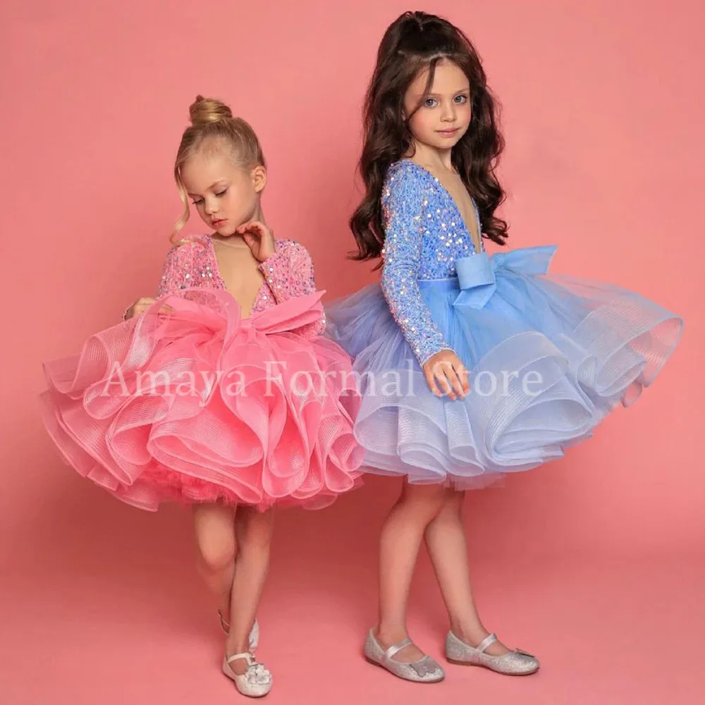 Amaya блестящие платья с блестками и цветами для девочек на свадьбу с длинным рукавом Пышное Платье принцессы платья на день рождения и Первое причастие