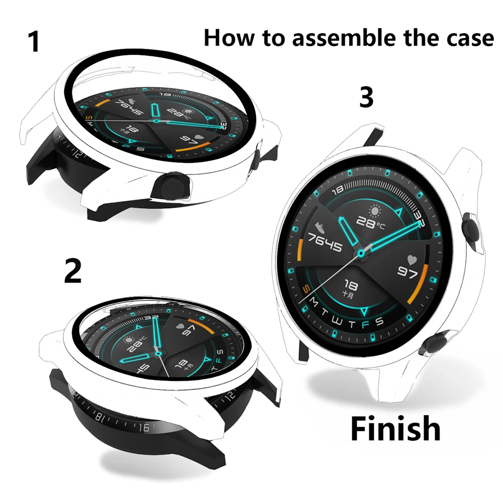 Чехол для часов из поликарбоната, защита экрана из закаленного стекла, элегантный удобный элемент для часов Huawei Watch GT 2 46 мм