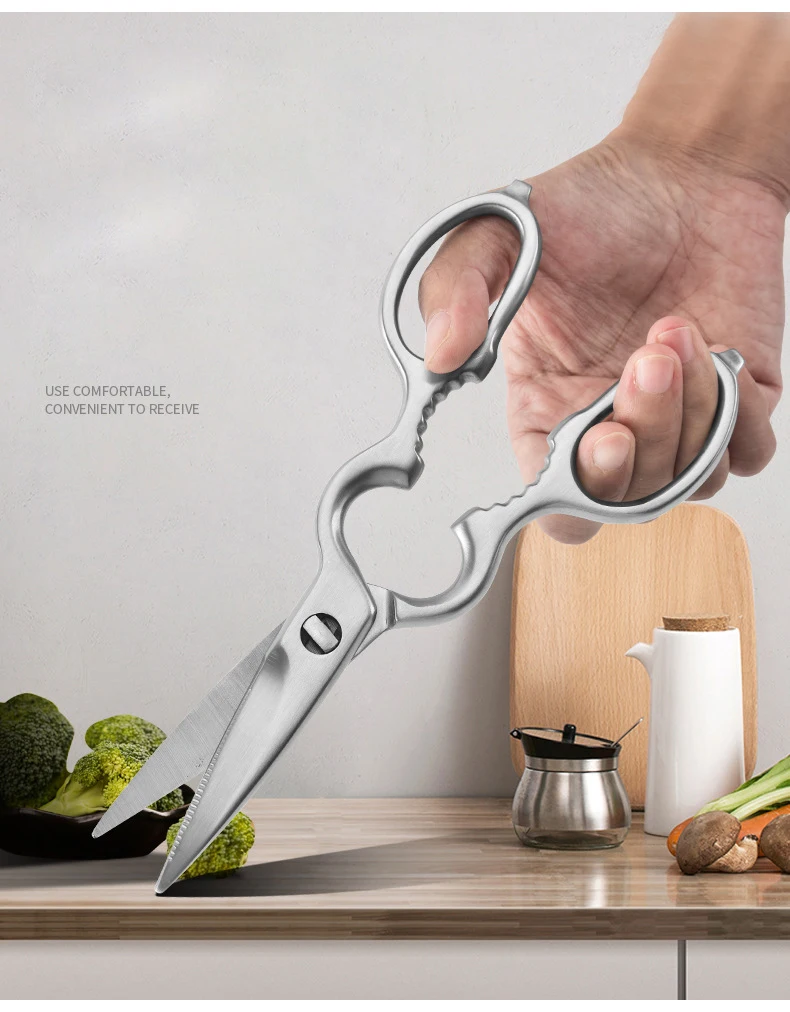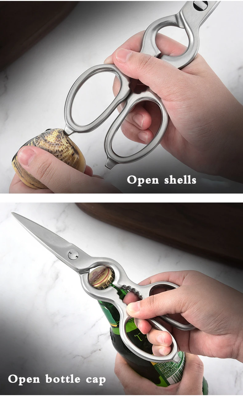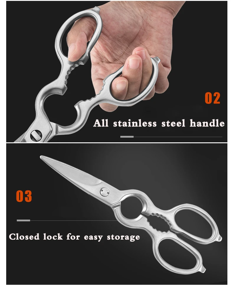 Размер изделия: 205*75 ммМатериал лезвия: 2Cr1 3 Нержавеющая стальМатериал ручки: 2Cr1 3 Нержавеющая стальВес нетто: 186 гХарактеристики: съемный, моющийся, прочный.Посылка: 1 * кухонные ножницыОписание товараИзготовлен из новой высококачественной пищевой нержавеющей стали, которая безопасна, устойчива к ржавчине. Ножницы для птицы очень жесткие, с отличной коррозионной стойкостью и высокой износостойкостью.Легко чистить, просто краску водой. Протрите мягкой тканью после использования. Содержит специальную мягкую ткань для протирания ножниц и очень крутую крышку ножа, специально оборудованную для вас.Эргономичный дизайн, Удлиненная ручка, с нескользящей подошвой, не повредит руки из-за длительного непрерывного использованияУниверсальный: Наши кухонные ножницы безупречно выполняют все основные кухонные задачи, такие как резка птицы, мяса, курицы, костей птицы, овощей, рыбы, трав, пиццы и многое другое. Подходит для кухонь, ремесел, садоводства и т. д.Уникальное качество: крепкий, толстый, и sharp.Совет: будьте осторожны с лезвием при использовании ножниц. Не подходит для детей. Тщательно протрите перед хранением.Эти ножницы можно использовать для резки всего. Он отрезает кости птицы и рыбы.