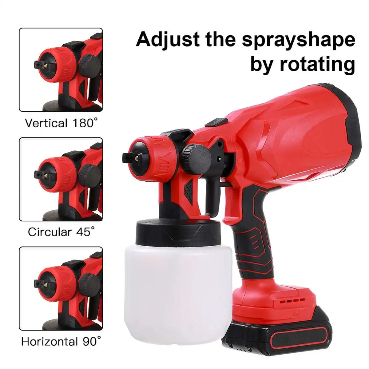 Название: беспроводной распылитель краскиЦвет: красный + черныйМатериал: пластикМетод подачи краски: Тип всасыванияАккумулятор:Для Makita 18V батареи (в комплекте 1/2 батарея)Сопло Калибр: 2,5 ммРасстояние распыления: 300 ммОбъем распыления краски: 700 мл/сСкорость Распыления: 150 куб. См/минЕмкость контейнера: 800 мл