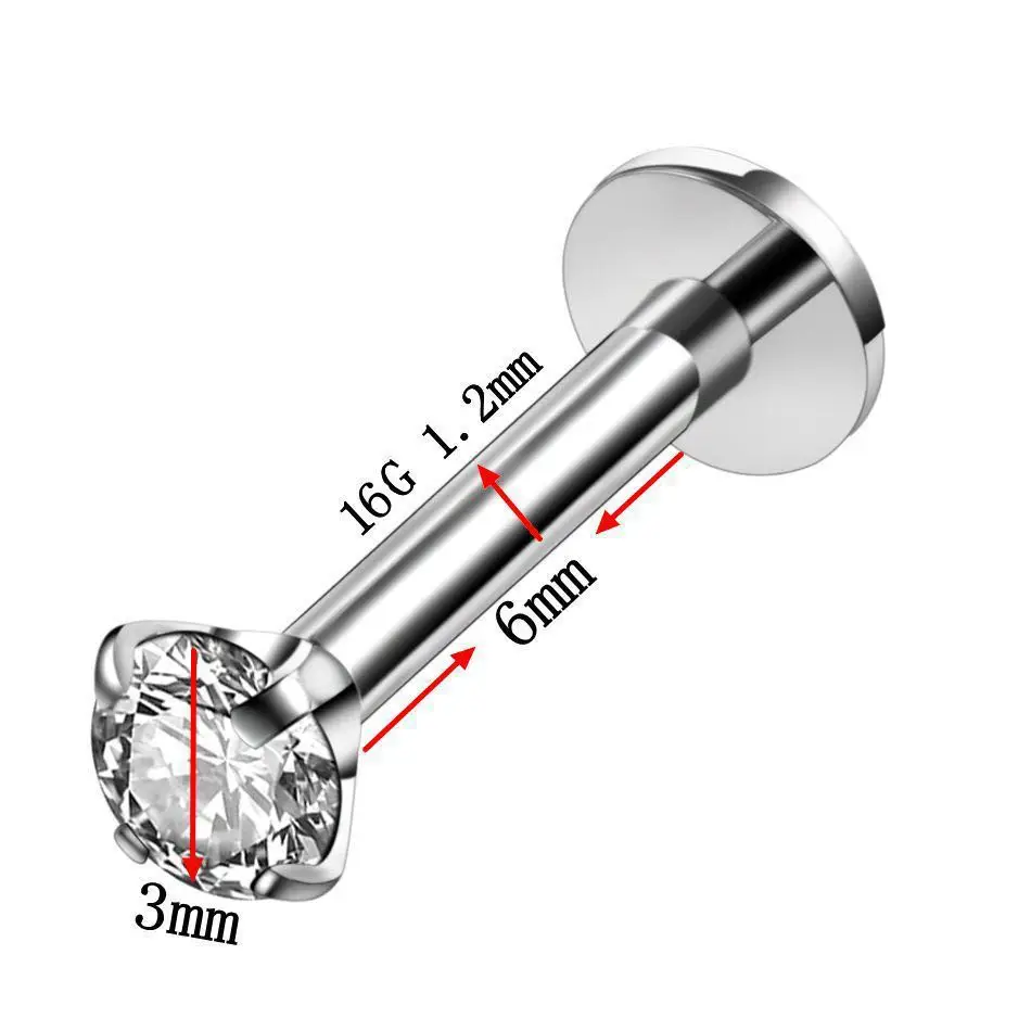Серьги-гвоздики из титана F136 для пирсинга, ювелирные изделия для прокола губ, ногтей, ушей 2-4 мм, с фианитом 6-12 мм, внутренняя резьба 16 г, 10 шт.титановые нити на ногти