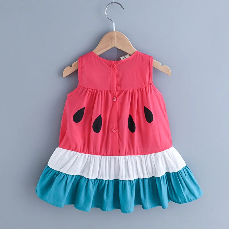 Новое платье без рукавов для девочек, детские платья с арбузом, повседневные красочные мягкие платья, летняя детская одежда с принтом
