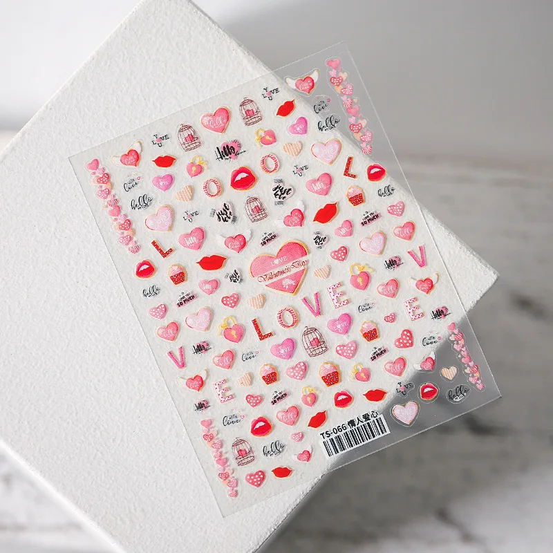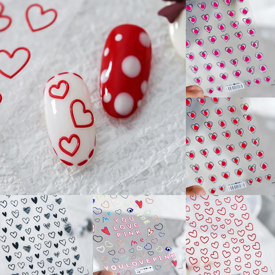 Романтические наклейки с сердечками 5D, наклейки для дизайна ногтей, клейкие обертывания для дизайна ногтей, декор для ногтей, День Святого Валентина, наклейки для ногтей s Z0582