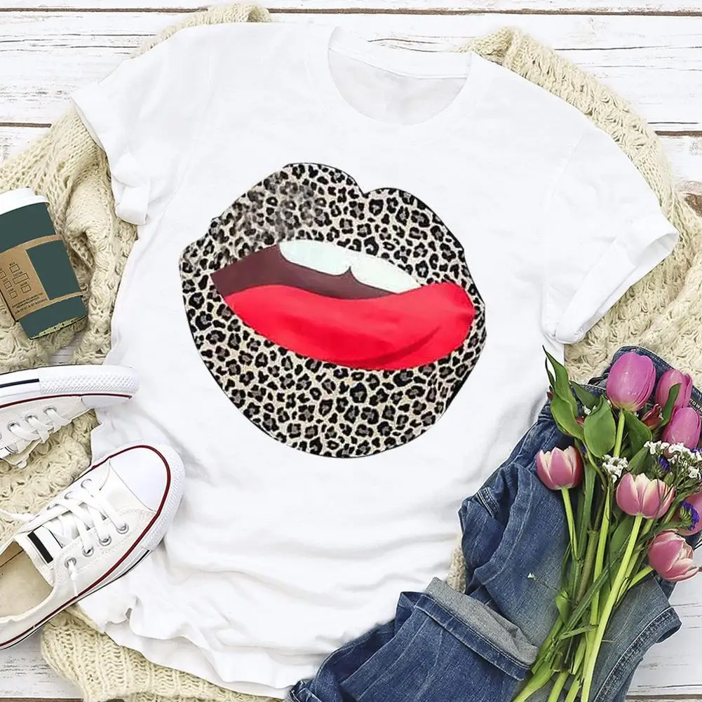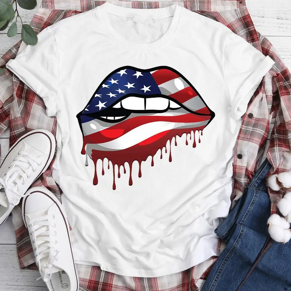 День святого ВалентинаЖенская футболка со звездами и полосками, с принтом в виде губ, с круглым вырезом, с коротким рукавом, женская летняя футболка, повседневный Топ, S-XXXL