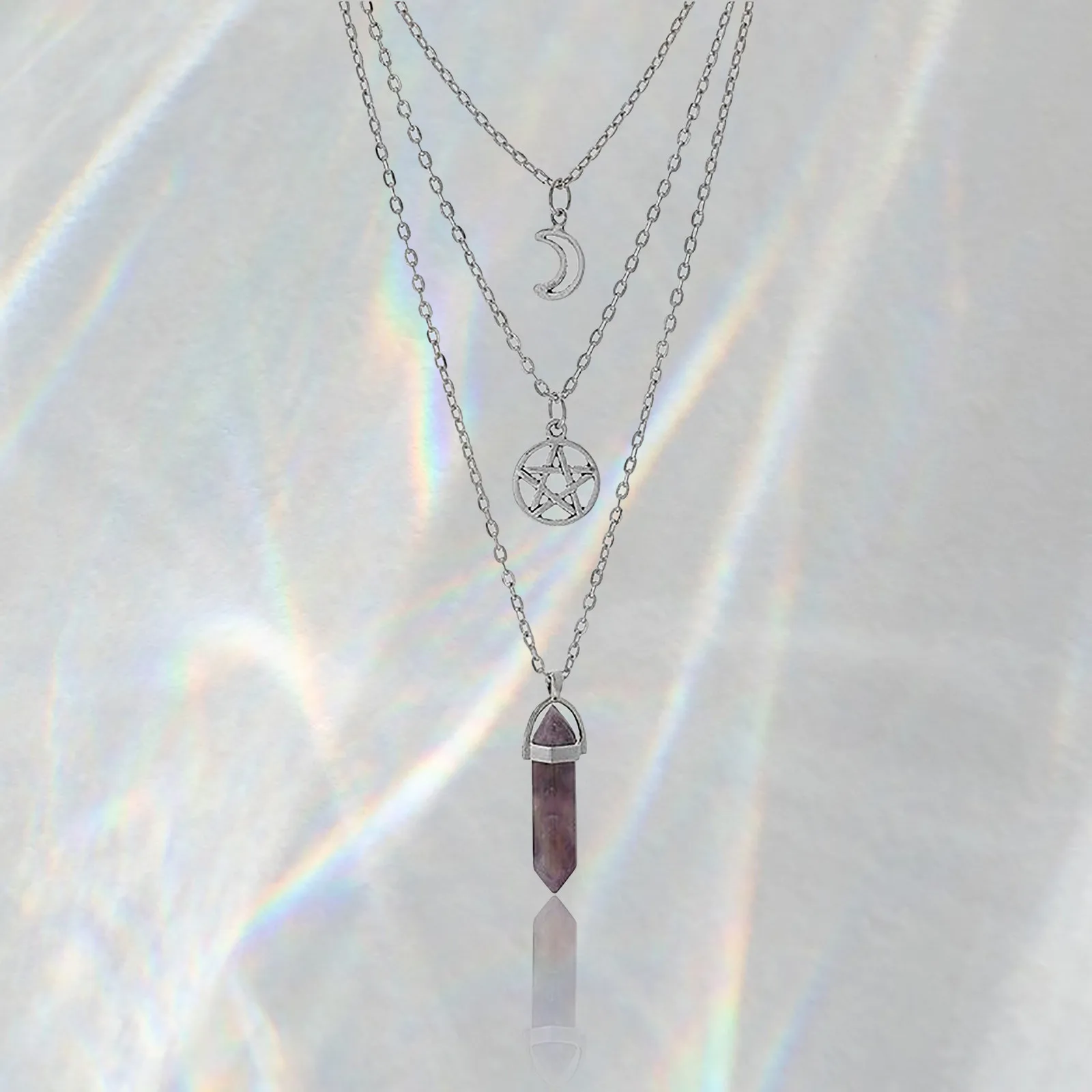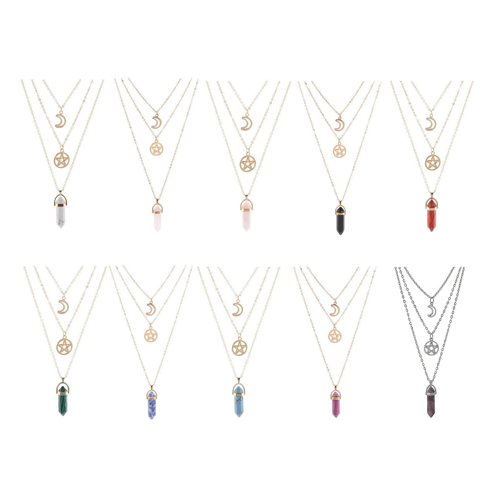 Шестигранная колонна из натурального грубого камня многослойное ожерелье с подвеской ожерелье