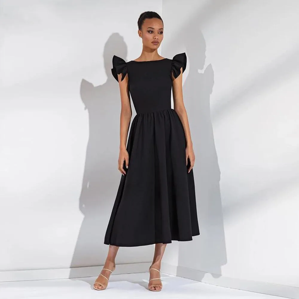 Vinca Sunny простое черное Короткое атласное вечернее платье с высоким воротником и рукавами-крылышками Формальные Вечерние платья для выпускного вечера наряды для вечеринки