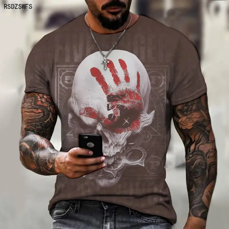Летняя футболка ATKPUN с 3D-принтом ужасов, Мужская футболка с 3D-принтом жесткого парня с черепом, уличный триллер большого размера с короткими рукавами