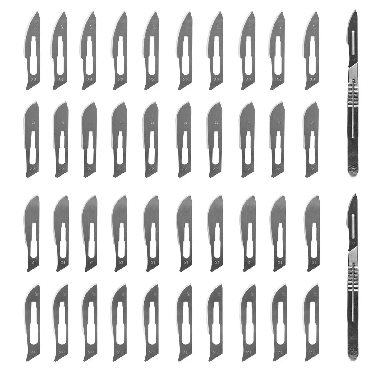 40 шт. 20 #21 #22 #23 # скальпель из углеродистой стали скульптурные лезвия + 2 шт. 4 # ручка скальпель Режущий инструмент для домашнего творчества PCB ремонт животных скульптурный нож