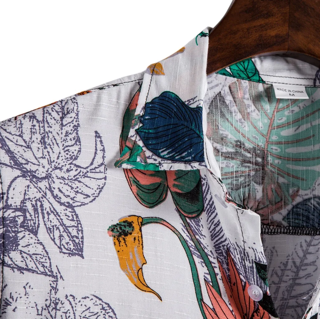 Гавайская рубашка мужская с принтом, льняная Этническая блузка с короткими рукавами, шифоновая однобортная рубашка в стиле Харадзюку, на лето