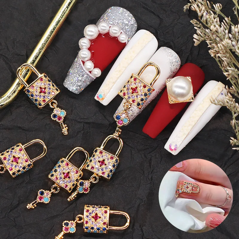 1 шт. Роскошные Большие циркониевые украшения для дизайна ногтей Уникальный дизайн замок в форме ключа 3D дизайн ногтей дизайнерские подвески Модное Новое поступление очаровательные