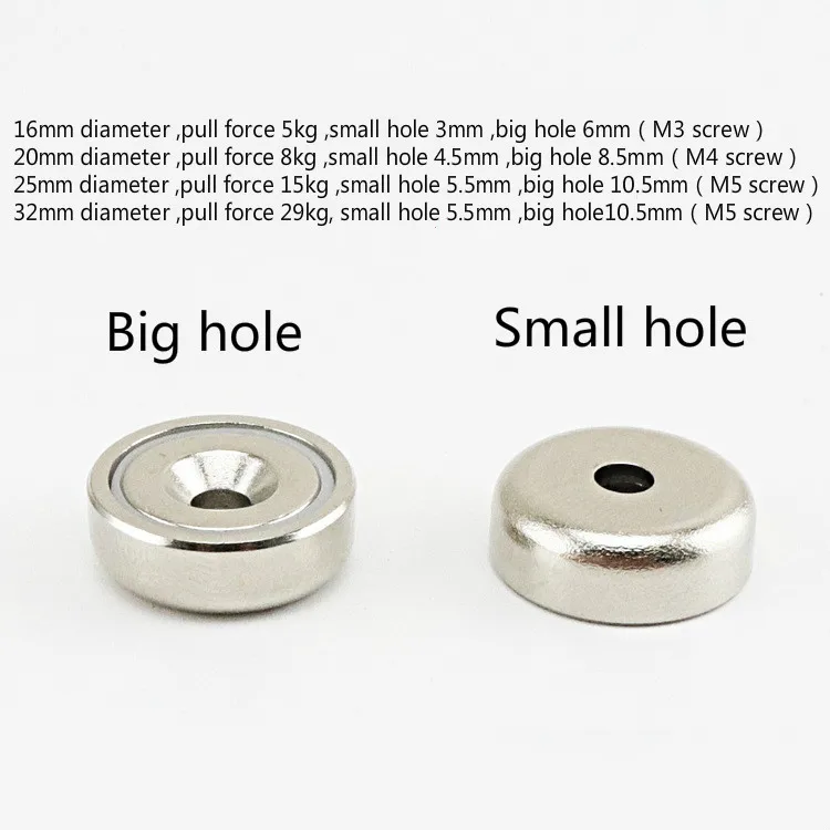 Диаметр 16 мм, тяговая сила 5 кг, маленькое отверстие 3 мм, большое отверстие 6 мм (подходит для винта M3)