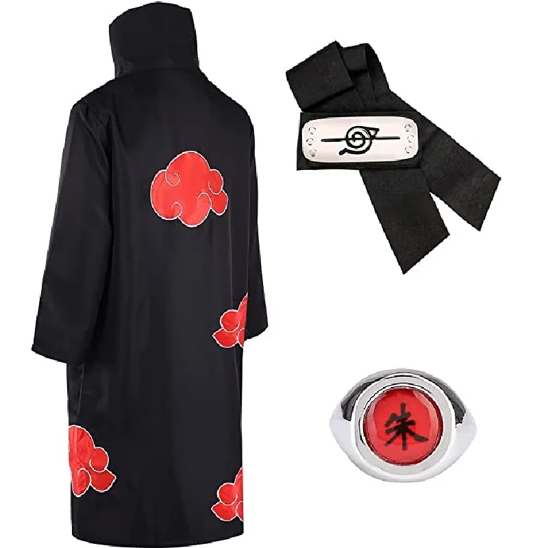 Костюм плаща из 3 предметов с повязкой на голову и кольцом, костюм Итачи для косплея, длинный халат, костюмы на Хэллоуин