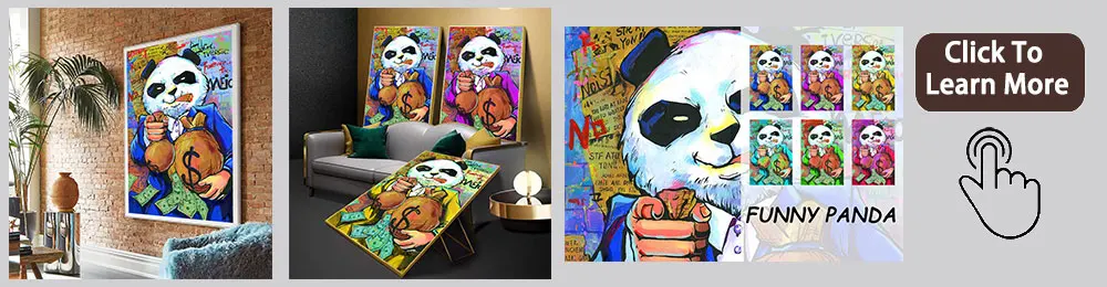 Граффити желтая синяя панда смешная улыбка лицо Картина на холсте п...