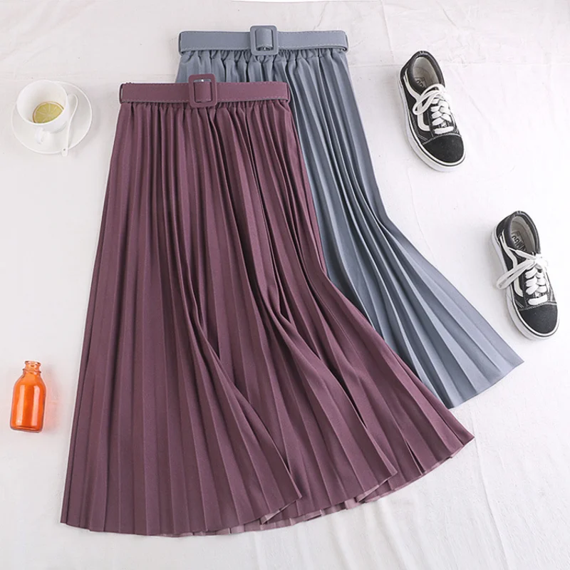 Повседневная элегантная женская юбка, однотонная, с высокой талией, с поясом, трапециевидная, винтажная, офисные, вечерние, длинная юбка, 2022, весна, лето, новинка, Faldas Jupe Femme