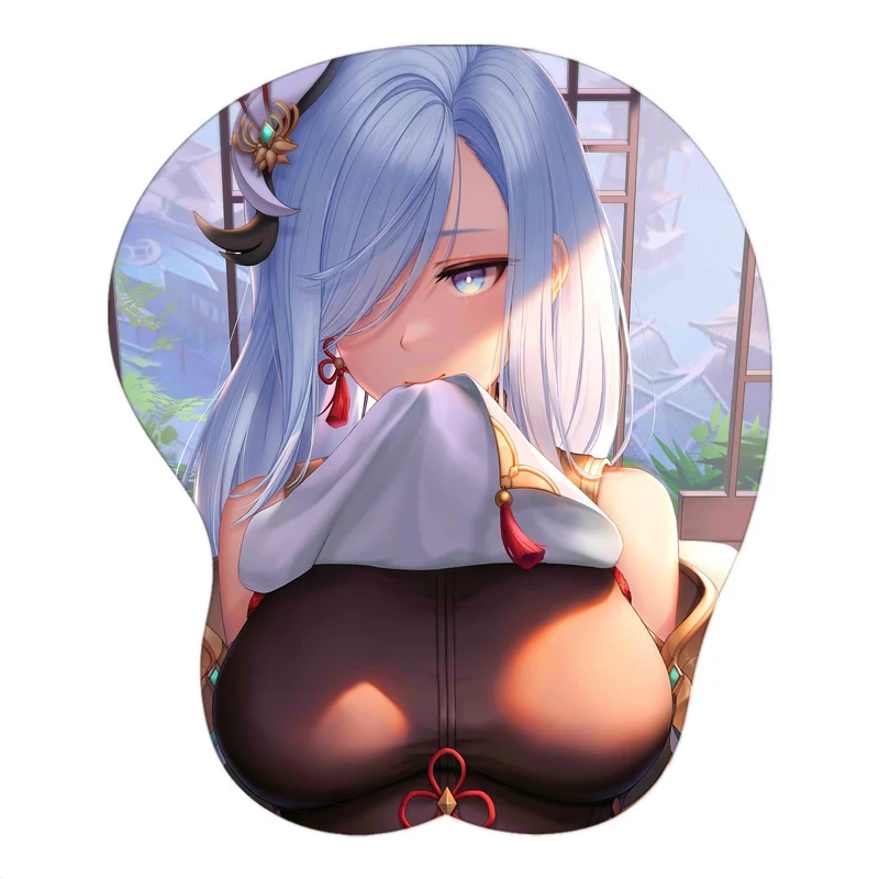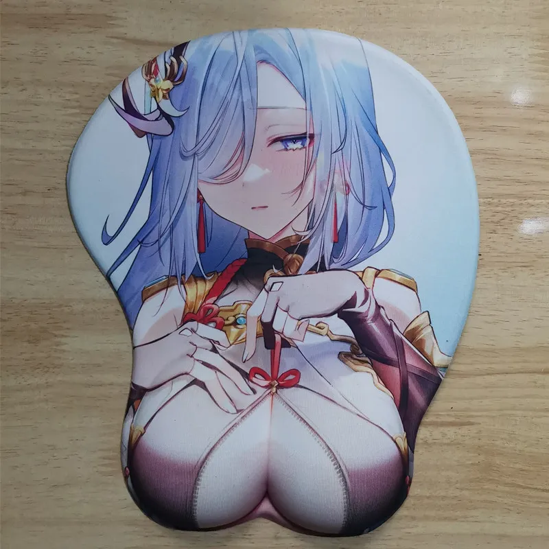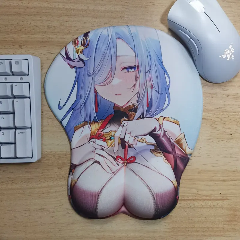 Геймерский коврик для мыши с сексуальным аниме-рисунком Genshin Impact Cute манга Shenhe с запястьем 3D большой Oppai силиконовый гелевый коврик для мыши padd