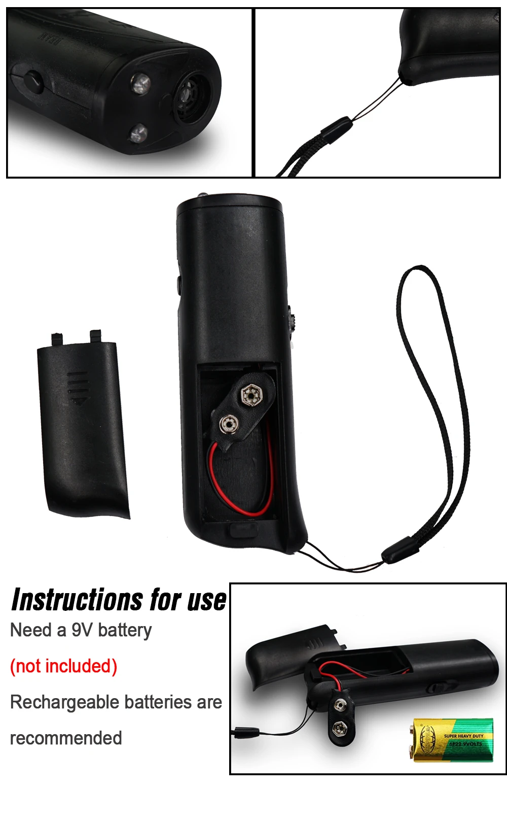 Ультразвуковой двойной головкой двойной рог светодиодный лазерный устройство для обучения собак Отпугиватель собак лай устройство для обучения собак без батареи