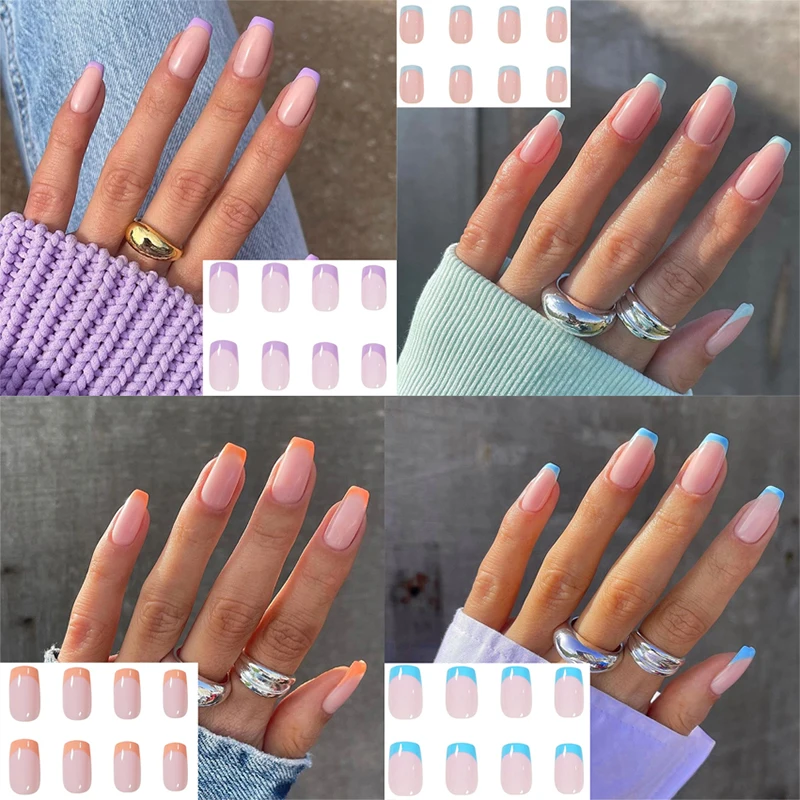 Модные французские ногти для женщин, 8 шт., простые искусственные ногти в стиле Ins, акриловые накладные ногти с полным наконечником, накладные ногти, ногти для дизайна ногтей