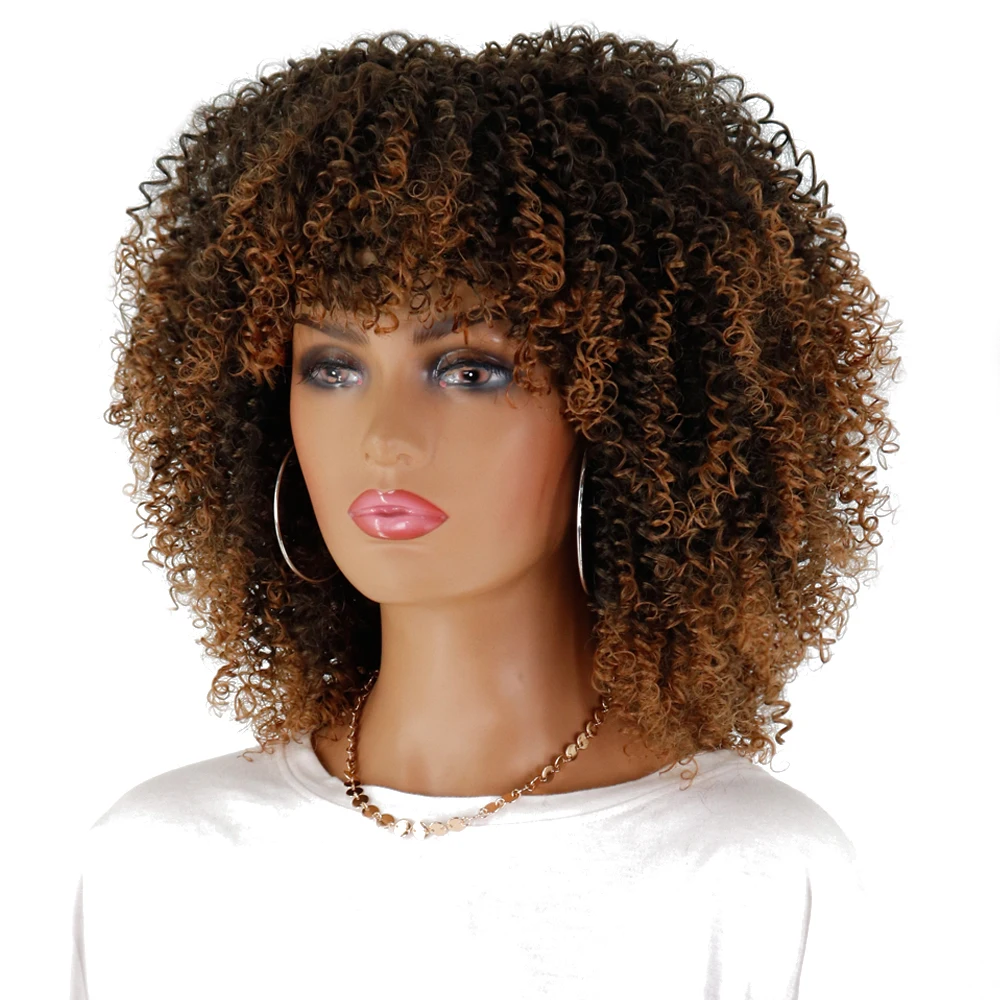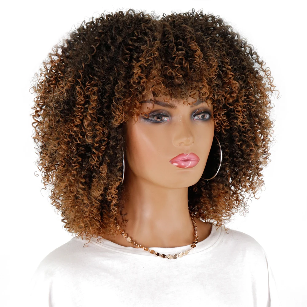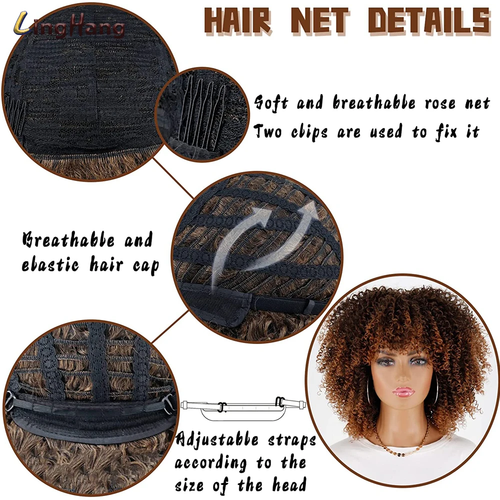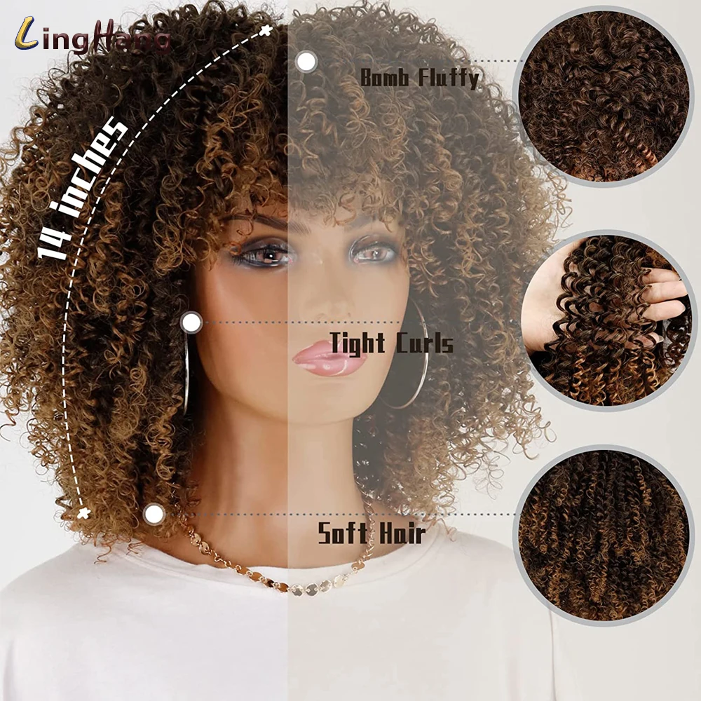 LINGHANG короткие волосы афро кудрявые вьющиеся парики с челкой для чернокожих женщин африканский синтетический омбер безклеевые Косплей парики