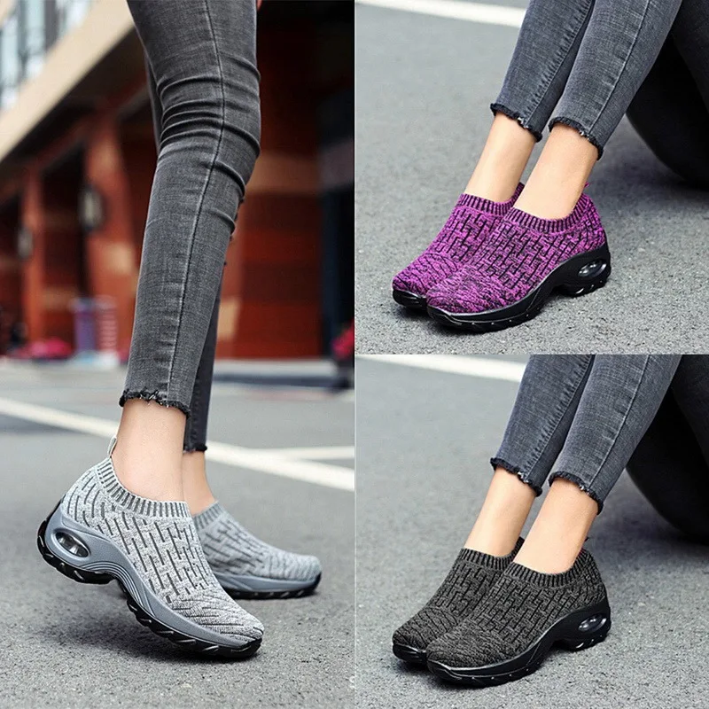 Кроссовки-носки женские, дышащие, сетчатые, плоская подошва, без за...