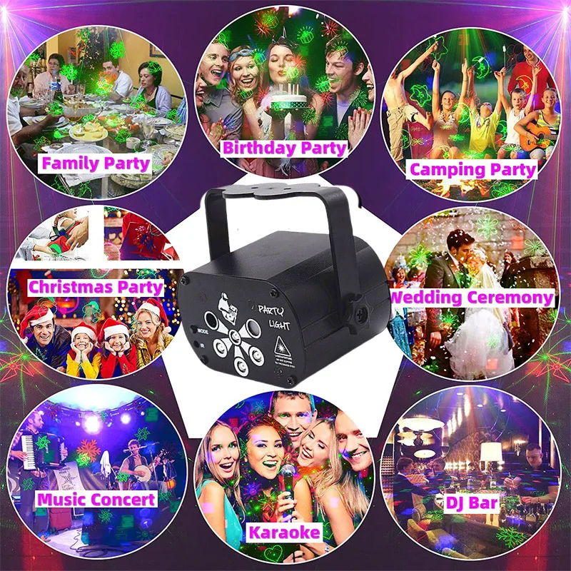 Пульт дистанционного управления и Звуковое управление дискотечный светильник: сверхчувствительный приемник позволяет удаленно управлять устройством, легко регулировать вкл/выкл, режим, цвет фона, настройки времени, режим работы (Автоматическое/Стробоскоп/Звуковое управление). Наш лазерный светильник оснащен усовершенствованным встроенным звуковым датчиком, который может быть изменен свободно в соответствии с музыкальным ритмом, создавая DJ disco и сценический светильник ing effects. Наслаждайтесь!