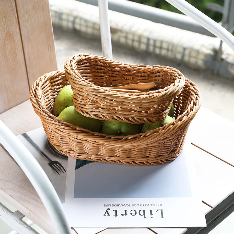 Плетеная лоза корзина-органайзер, кухонный поднос для хлеба, сервировка еды, фруктов, косметики, корзины для белья, столешница для ванной комнаты, слиток